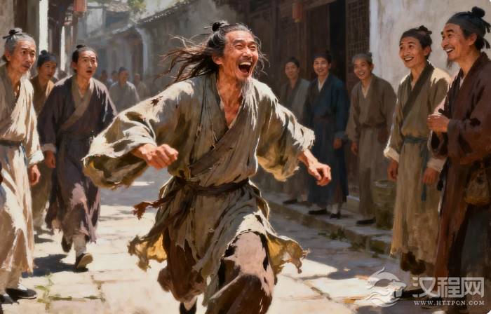 范进的疯癫不是偶然的生理失控,而是制度性压力的必然爆发。从二十岁应考到五十四岁中举,三十四年的科场蹉跎已将他的精神压缩到临界状态。吴敬梓以精准的细节描写这场精神坍塌:“一脚踹在塘里,挣起来,头发都跌散了,两手黄泥,淋淋漓漓一身的水”。这个满身泥泞的形象,与后来披红簪花、被众人簇拥的“范老爷”形成残酷对照——同一具肉身,因功名的有无而被赋予截然相反的社会定义。